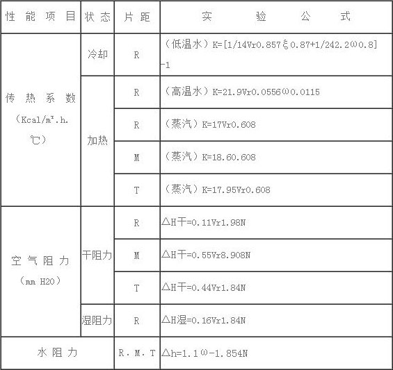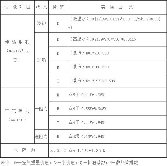 S型銅制散熱器的基本性能實(shí)驗(yàn)公示表