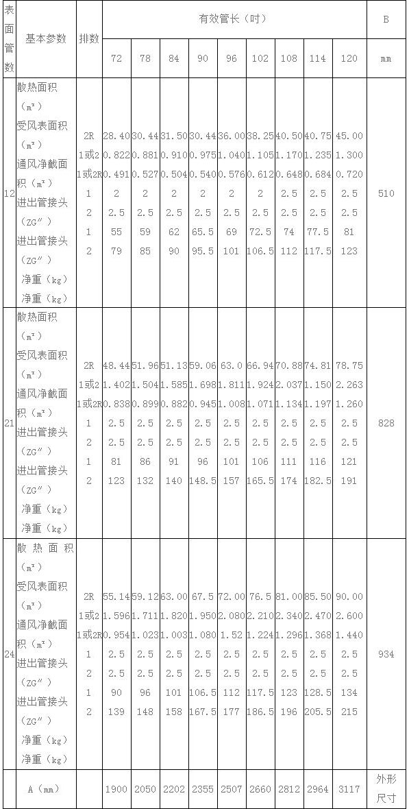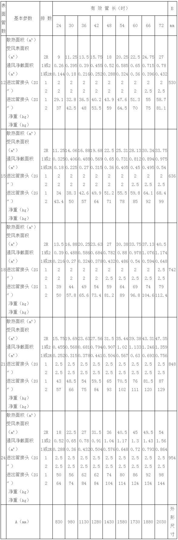 6、S型銅制散熱器的散熱管結(jié)構(gòu)參數(shù)表
